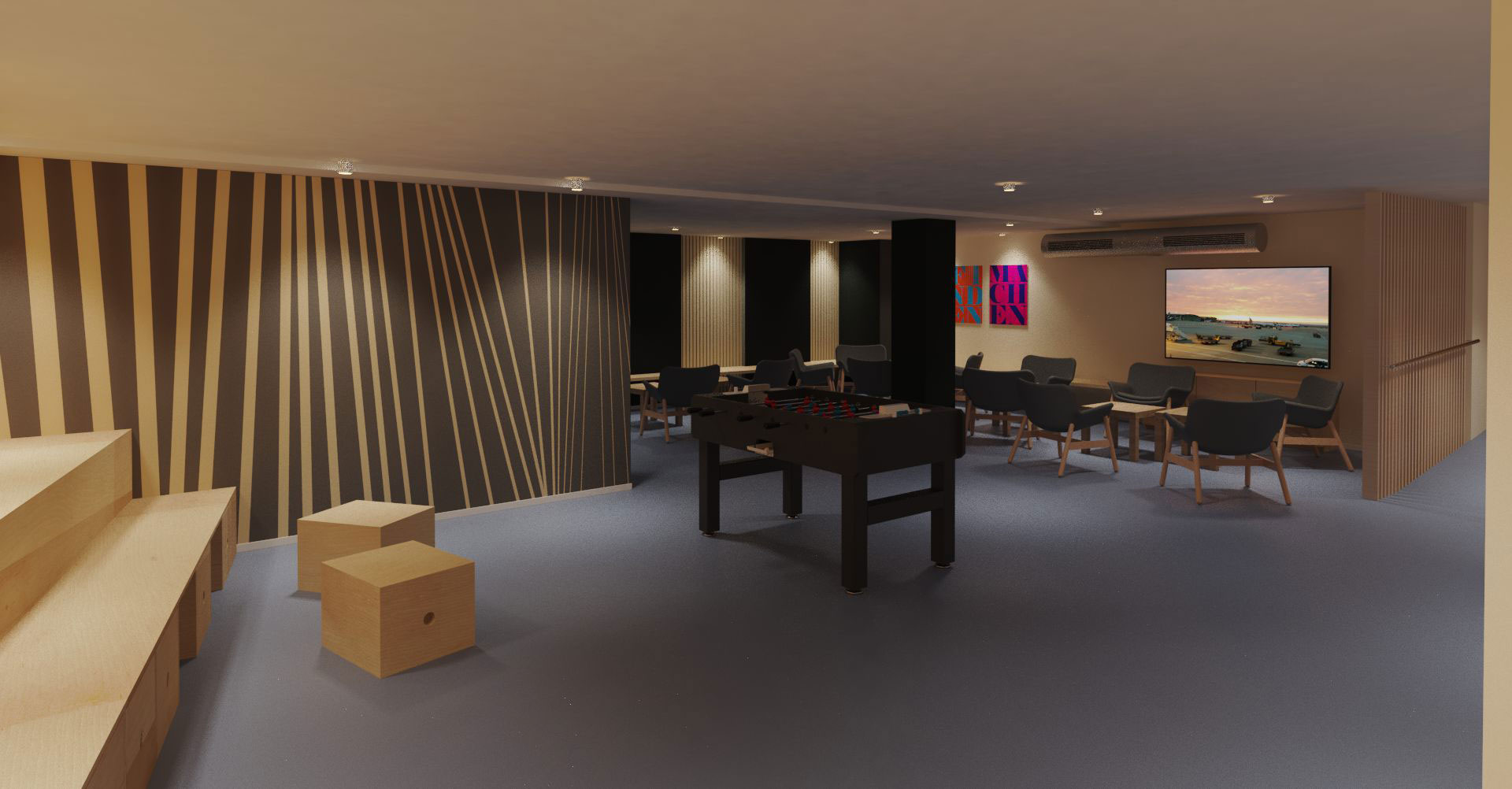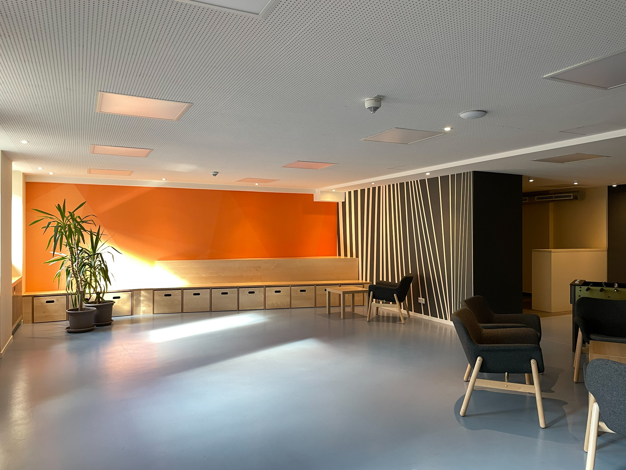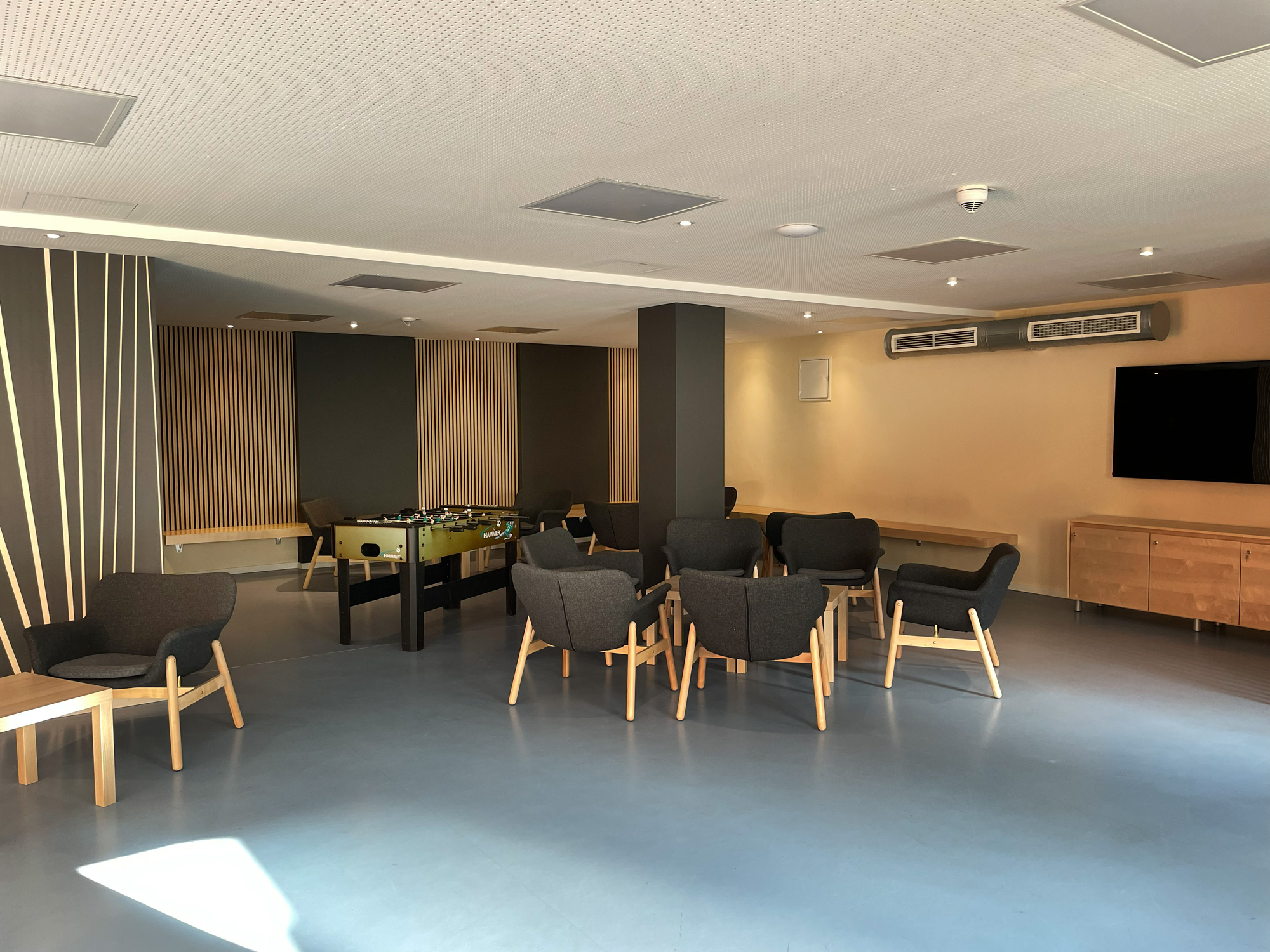 Mit der Neugestaltung des Gemeinschaftsraums wurde genau dafür ein passender Rahmen geschaffen: ein offener, vielseitiger Treffpunkt, der Aktivität und Entspannung miteinander verbindet.